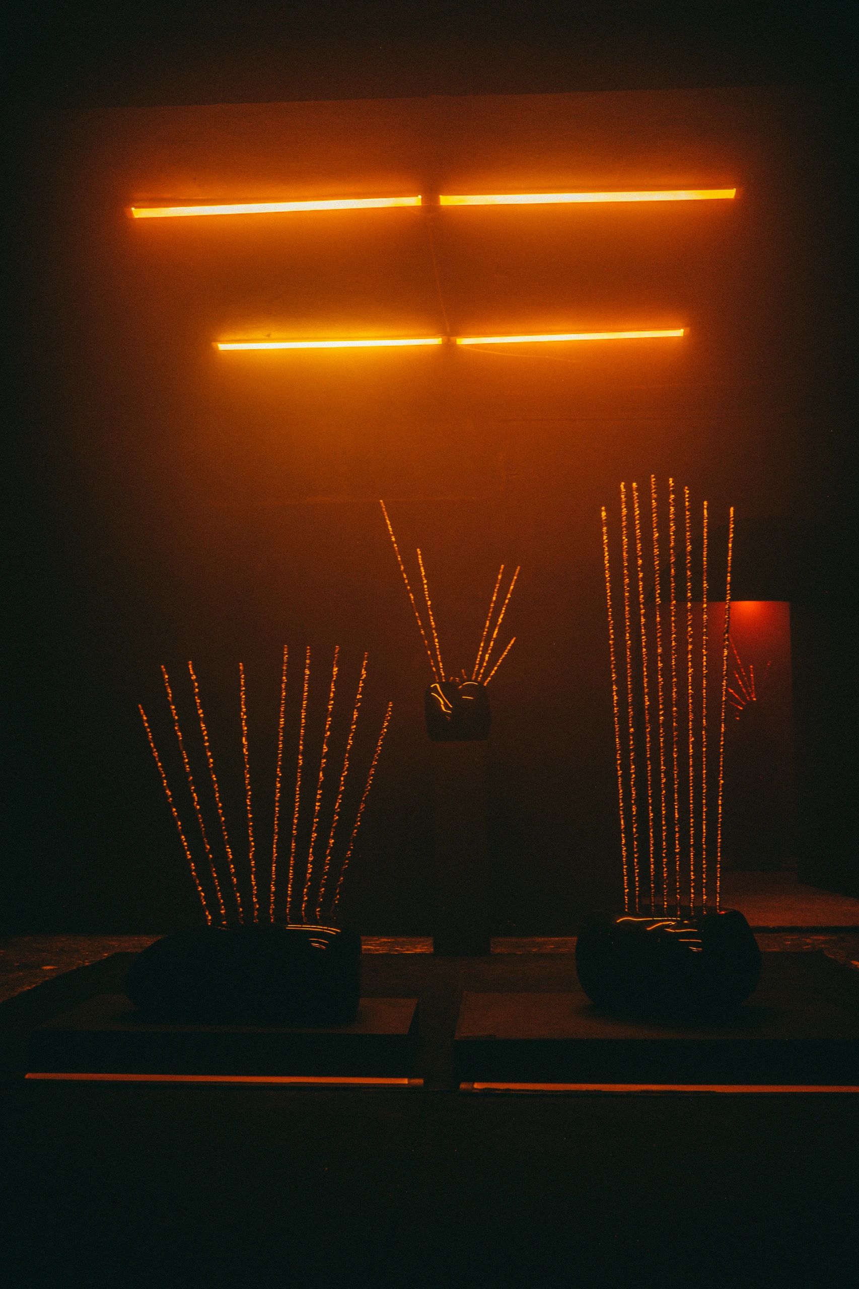 Carving, cutting, and polishing these deeply-charged and metaphysically-powerful obsidian stones into monolithic bases, then burning, bending and twisting copper pipes into crowning ornaments. The tension between the glass stone massing and angular copper extrusions makes for a strong visual contrast.